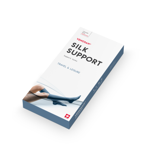 エレガントで上質なサポートソックス。100%シルク素材で快適な履き心地。足首への圧力は15~20mmHg。